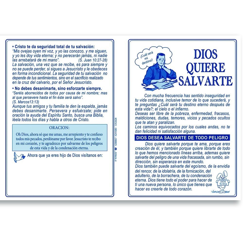 Paquete de 100 Folletos Evangelisticos Díptico – Dios quiere Salvarte