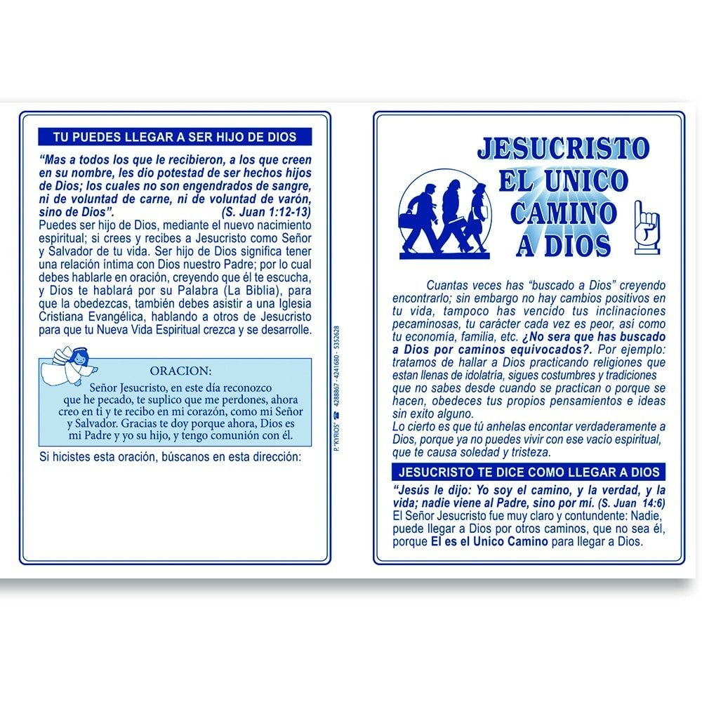 Paquete de 100 Folletos Evangelisticos Díptico – Jesucristo el único camino a Dios